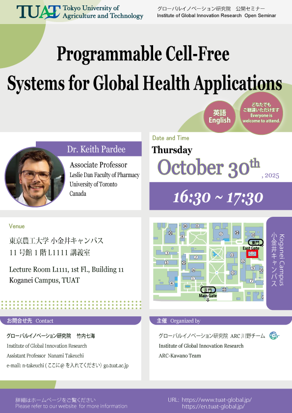 | Contact | Institute of Global Innovation Research Assistant Prof. Nanami Takeuchi Email: n-takeuchi (at) go.tuat.ac.jp |