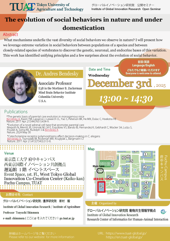 | Contact | Institute of Global Innovation Research, Institute of Agriculture Prof. Tsuyoshi Shimmura e-mail: shimmura(at) go.tuat.ac.jp |