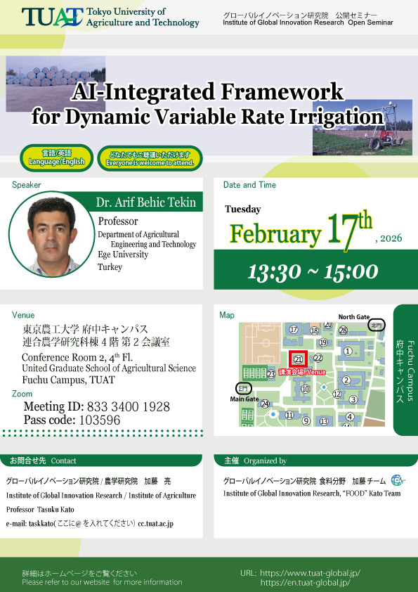 | Contact | Institute of Global Innovation Research, Institute of Agriculture Prof. Tasuku Kato Email: taskkato(at)cc.tuat.ac.jp |